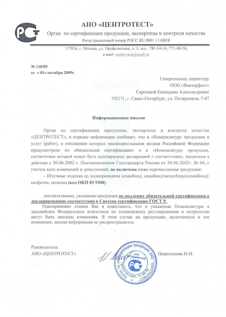 Всю подробную информацию об отказных письмах уточняйте у наших специалистов по тел. (495) 011-52-22, или пишите на электронную почту info@gostest.com