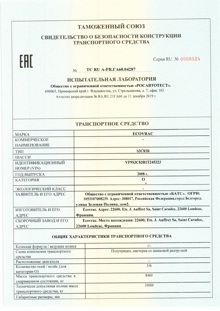 - СБКТС (Свидетельство о безопасности конструкции транспортного средства)